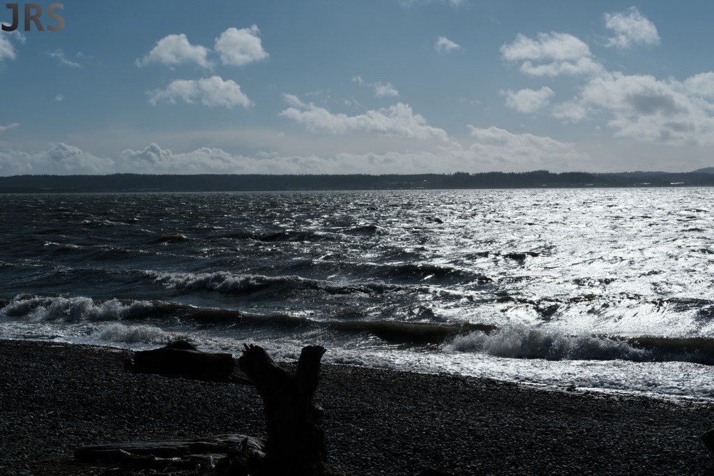 I would not want to be caught any closer to the water (or on it) today, even in this pocket of sun. It was windy enough to make one of my lens hoods whistle if held any direction other than due west. The upside of this wind is that it brought a lot of waves to the bay.