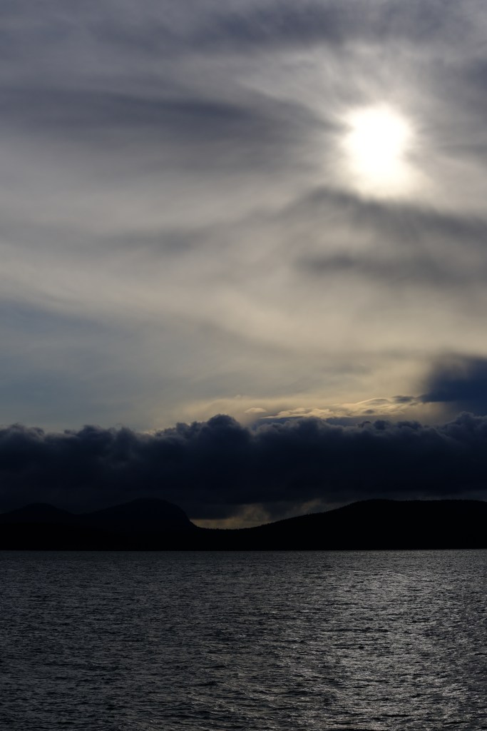 Weather was forecast to not be that good for running around the island either, but it turned out to be as good as we could ask for in late winter. It did start out cloudy, but there was subtle beauty in the sky on the outbound sailing.
