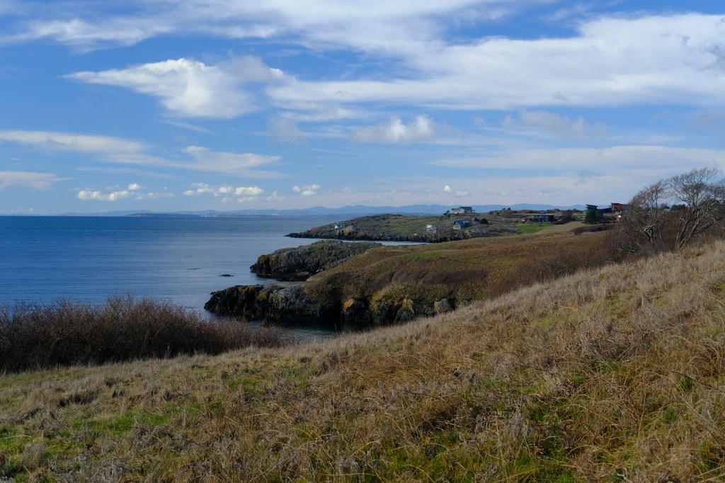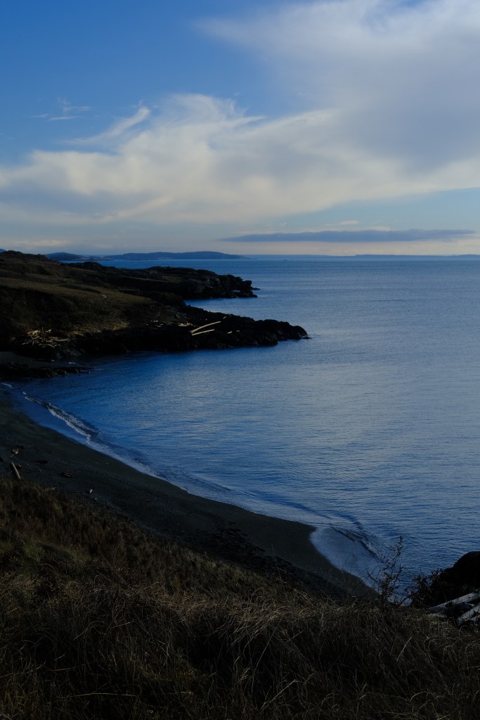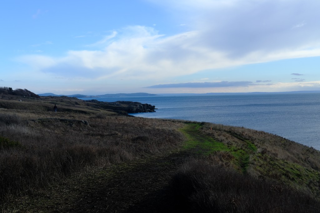 The cliffs near American Camp feel like what I currently imagine Scotland is like. We’ll see if that holds true or not in a few months. Around here I got the most memorable bit of dialog on the whole trip from passerby: “You must be from Canada: You’re not wearing a coat!”